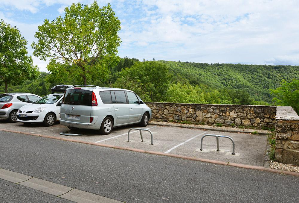 Les "Gites de la Salière" sont situés avenue de la gare à Najac. Le POINT ROUGE sur la photo indique exactement l'espace de stationnement qui vous est réservé. Vous pouvez également entrer sur votre GPS les coordonnées suivantes: