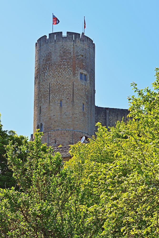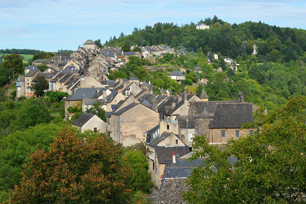 Depuis les gîtes de la salière, Najac se présente avec son surprenant alignement de maisons, construites sur l'arrête rocheuse conduisant au château.